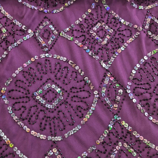 Vintage Y2K ANGIE Geometric Embellished Plum Sheath Scallop Hem Mini Dress Sz L