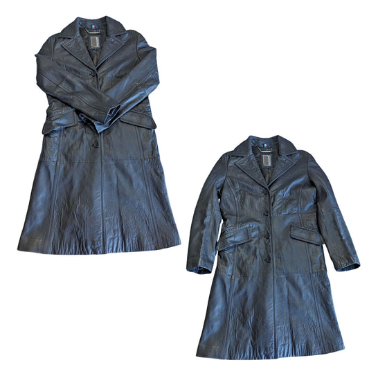 Vintage Y2K KNOLES & CARTER Black Italian Lambskin Leather Long Overcoat Size L