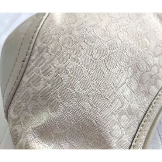 NWOT Vintage Y2K COACH Signature Jacquard Cream Baguette LeatherTrim ShoulderBag
