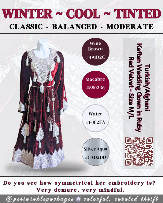 Turkish/Afghani Bindalli Kaftan Wedding Dress - Embroidered Velvet & Silver M/L