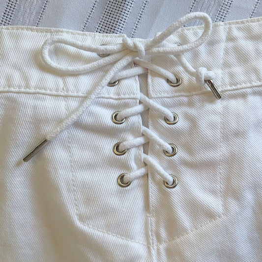 Vintage Y2K TOMMY HILFIGER 100% Cotton Back Lace Up WideLeg Curvy Low Jeans Sz 8