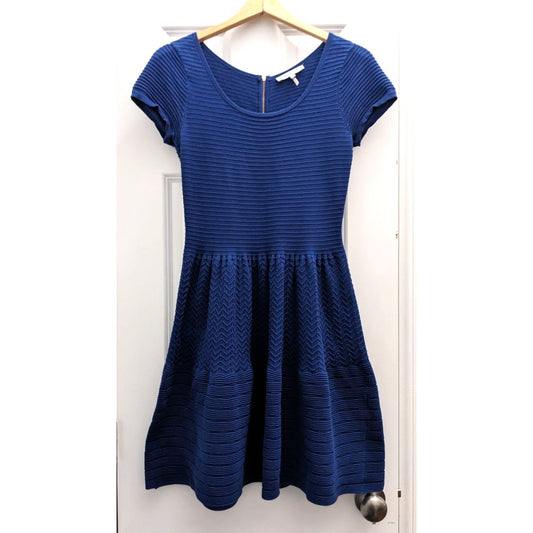 SANDRO Paris Cobalt Blue Knit Dress - Cap Sleeve Skater Fit & Flare Size 2