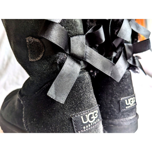 UGG AUSTRALIA Black Bailey Bow II Sheepskin Shearling #1002954 Size 7