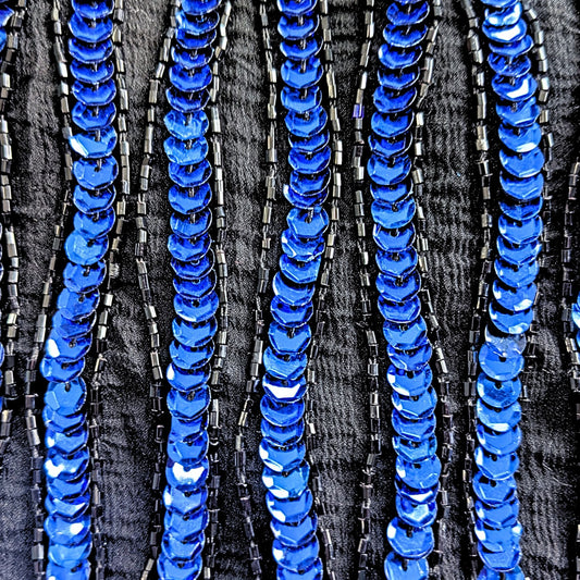 Vtg 80s STENAY Black Sapphire Blue 100% Silk Sequin Striped Evening Top Size S