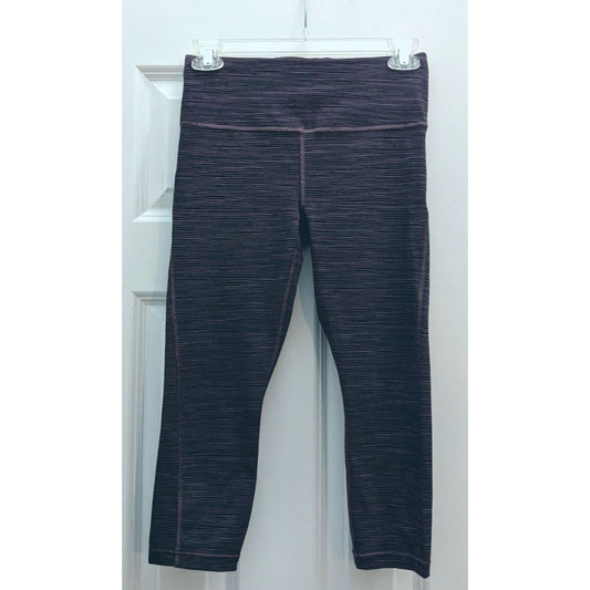 ATHLETA Volcanic Violet & Black Linear Lines Capri Leggings Side Pockets Size XSP