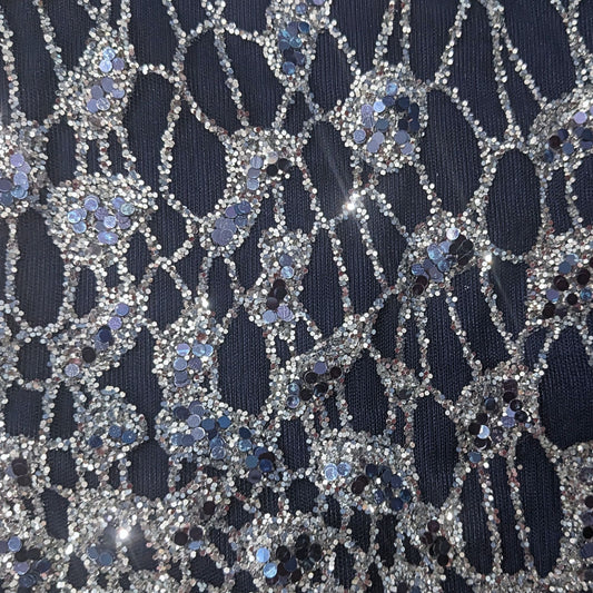 PORTIA & SCARLETT Navy Glitter Web Beaded Short Sleeve Slit Sheath Dress Size 18