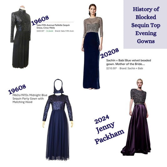 Vintage 60s Country Miss THE SUBURBAN Blue Sequin Velvet Blocked Evening Dress Size