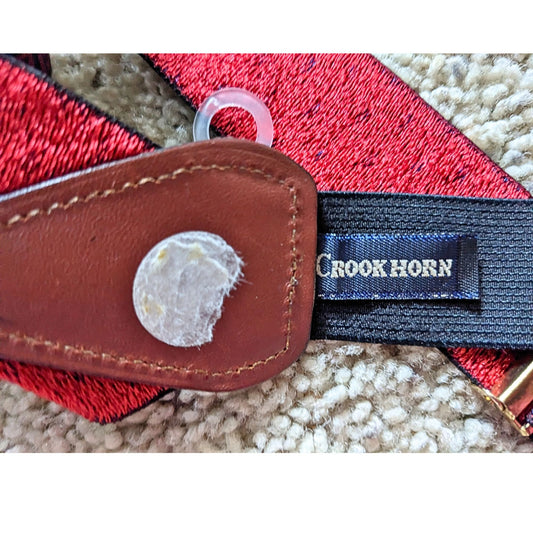 Vintage 60s CROOKHORN Red & Blue Diamond Print Suspenders with Belt Loops - Dark Academia