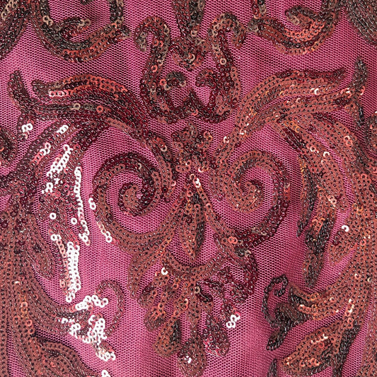 Burgundy Semi-Sheer Illusion Corset Bodice Formal Pageant Gown w/ Train Size 14