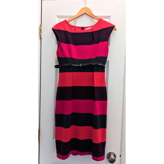 CALVIN KLEIN Colorblock Sheath Dress Orange & Purple w/ Belt Midi Size 4