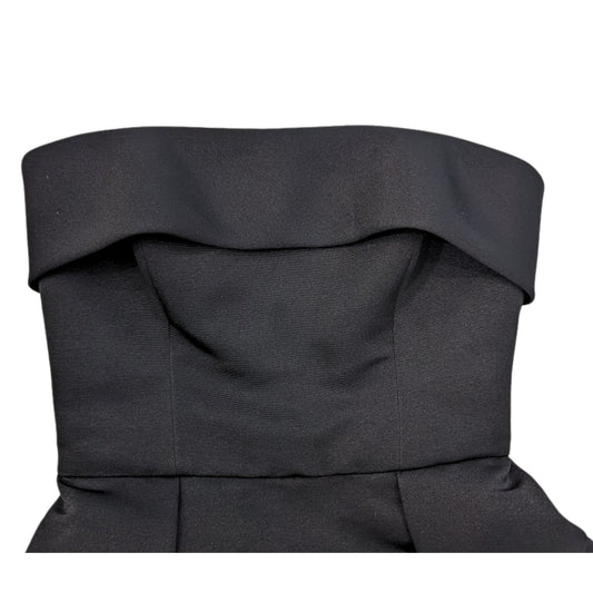 NWT AMSALE Black Faille Foldover Strapless Fit & Flare Midi Dress P386A Size 2
