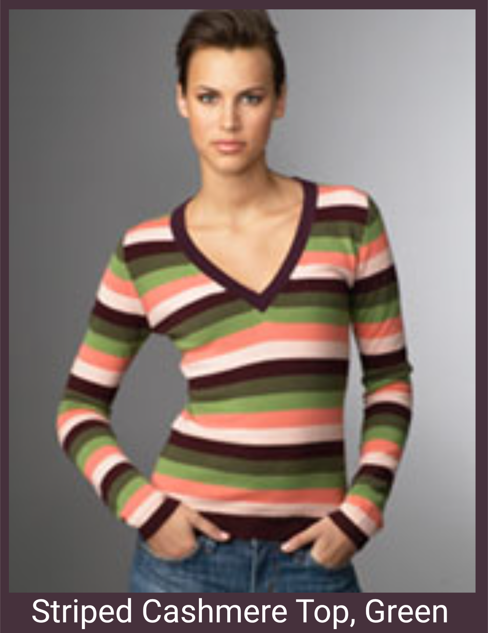 Rugby Striped Cashmere V-Neck LS Top 2005