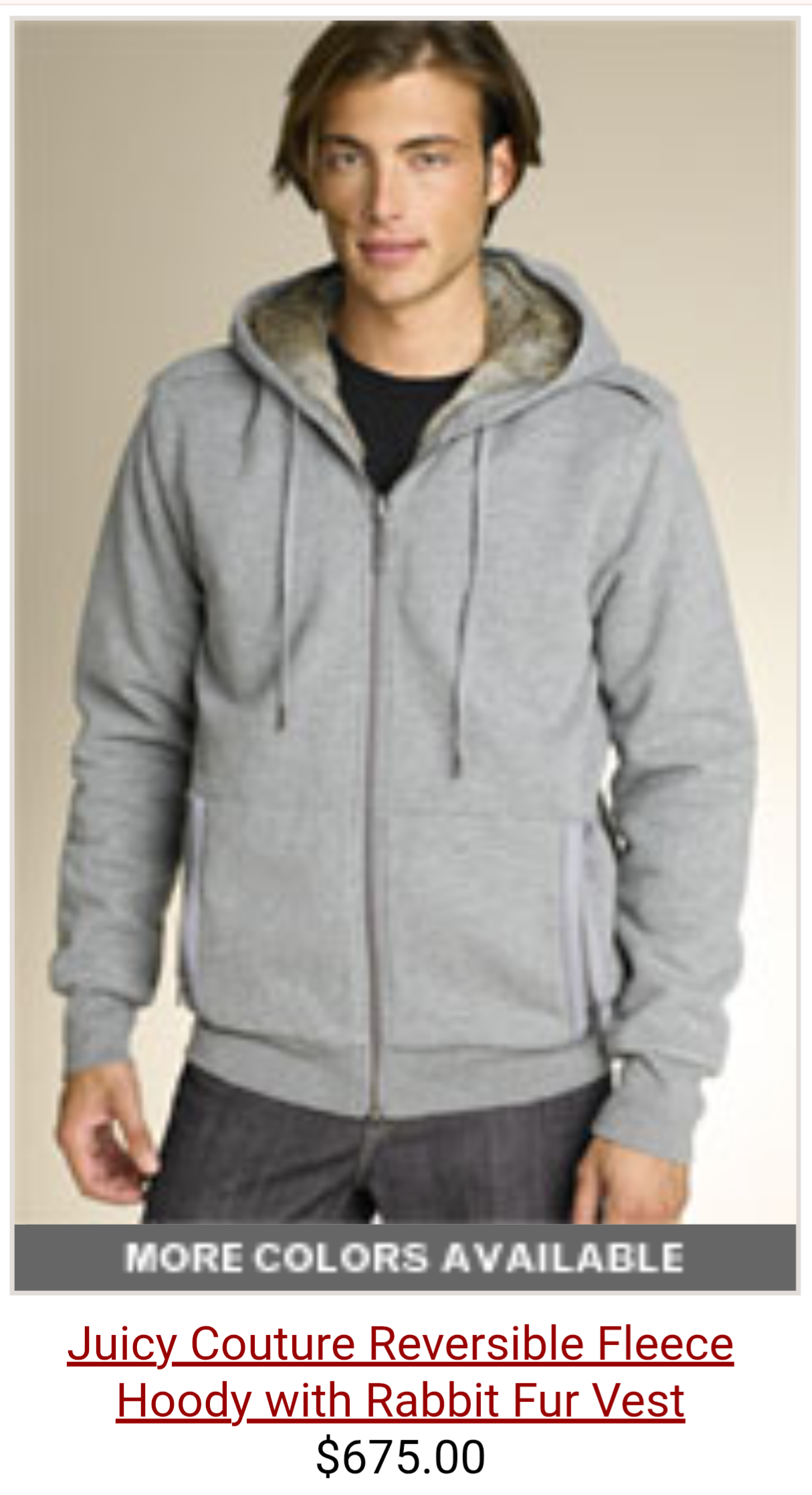Reversible Rabbit Fur Lined Vest French Terry Fleece Zip Hoodie 2007
