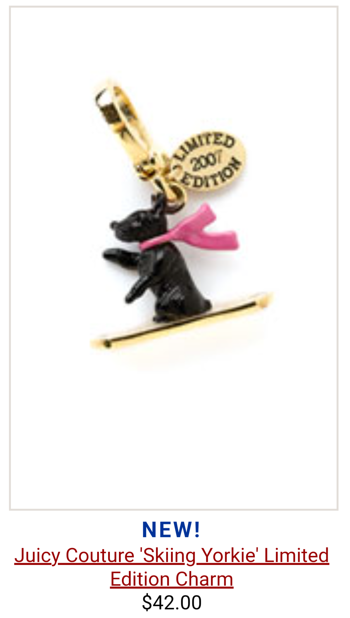 Skiing Black Yorkie w/ Pink Scarf Limited Edition Charm 2007