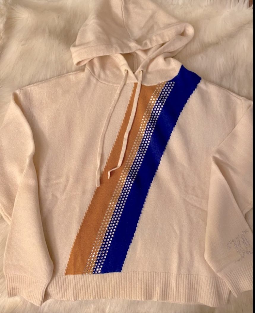 Cashmere Knit Swarovski Crystal Retro Striped Tracksuit Set