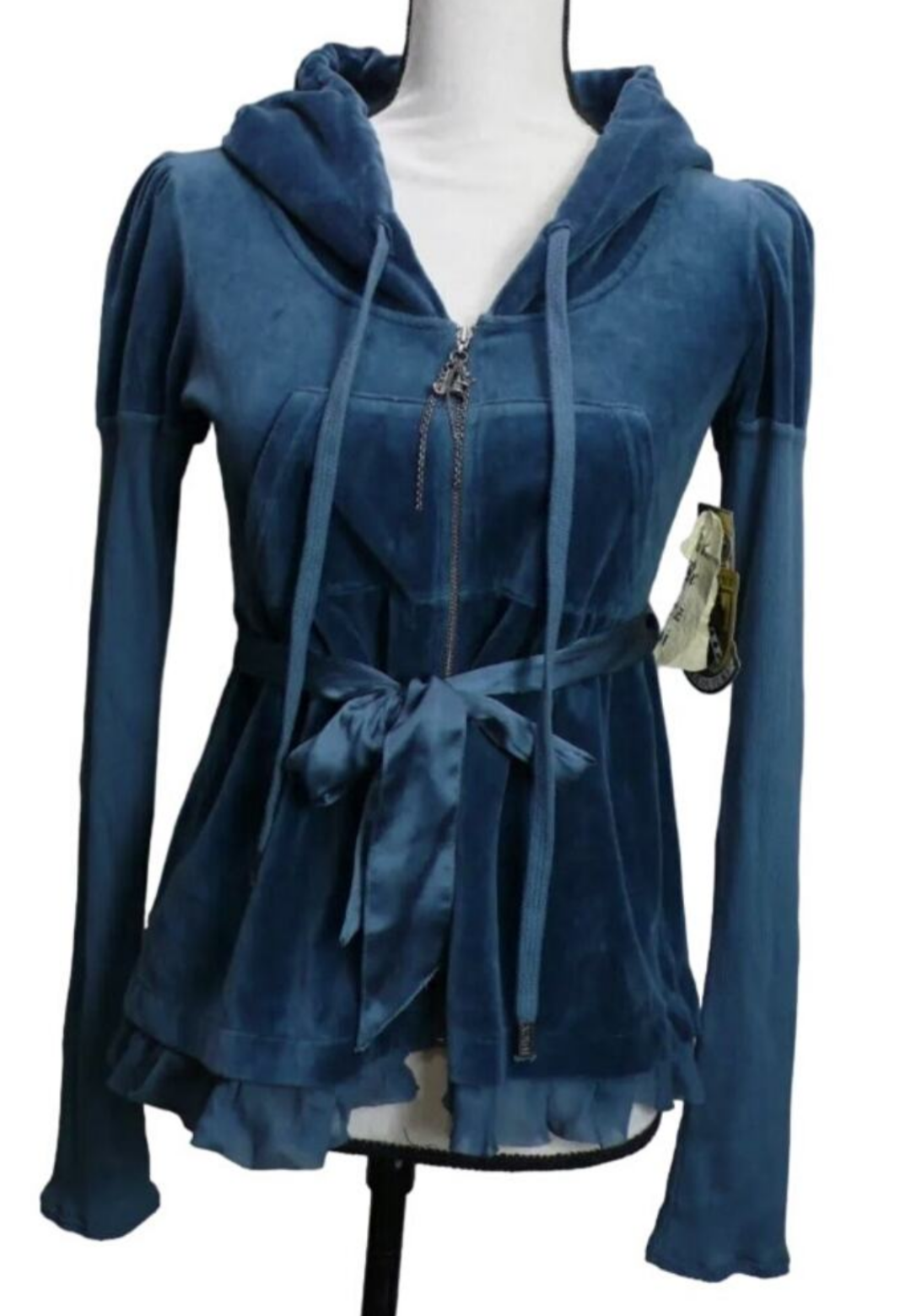 Ruffle Velour LS Combo Ribbon Empire Waist Dog Charm Zip Up Hoodie 12993 2006