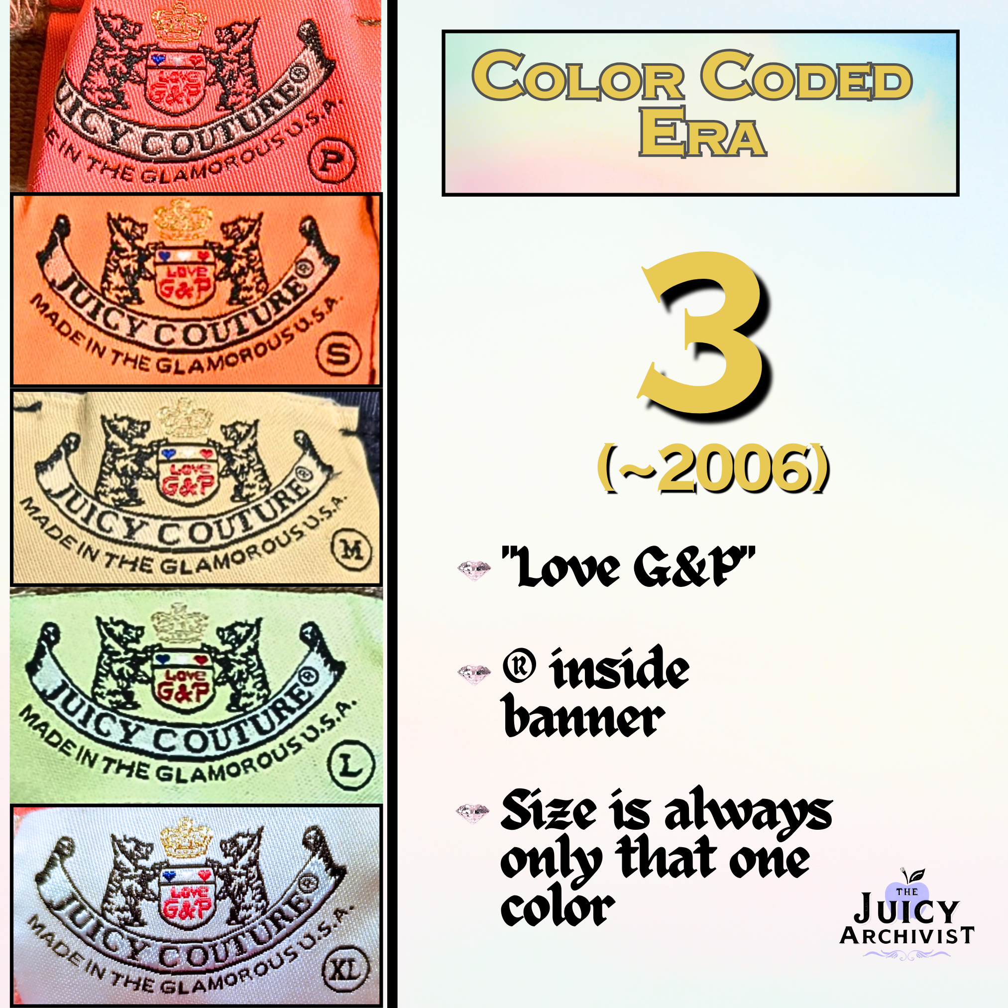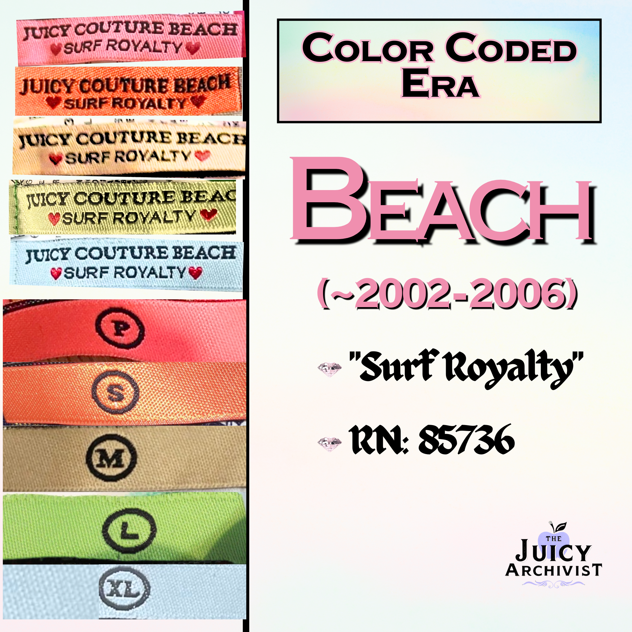 *Note:* These dates are educated estimates and may shift slightly because of the limited information tying specific label designs to pieces & years, especially in the early internet era. Please consider submitting your 90s and 2000s print resources to help in this process 🩷