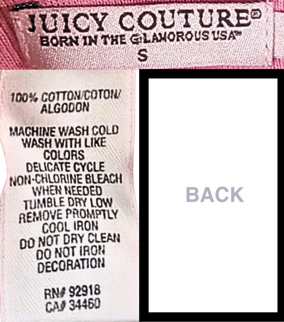 View Label CardA06 - Embroidered King Crown, ® after COUTURE, ™ after USA, Sticker Unknown (~2008-2011)