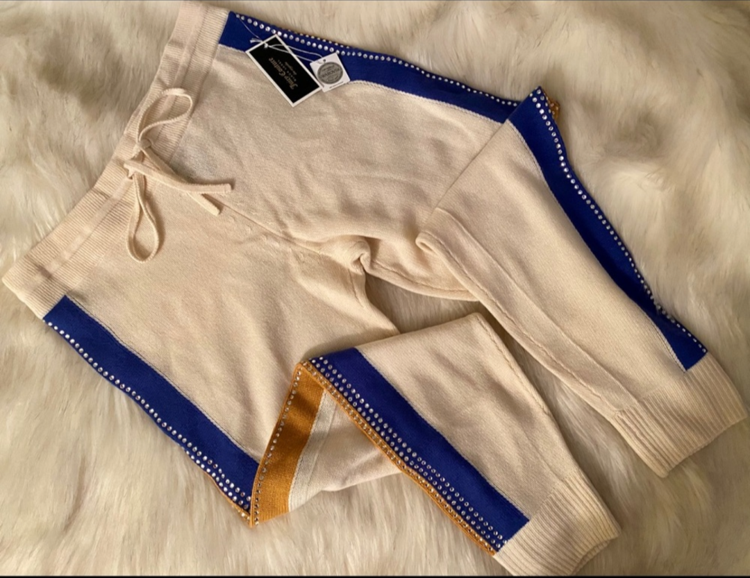 Cashmere Knit Swarovski Crystal Retro Striped Tracksuit Set