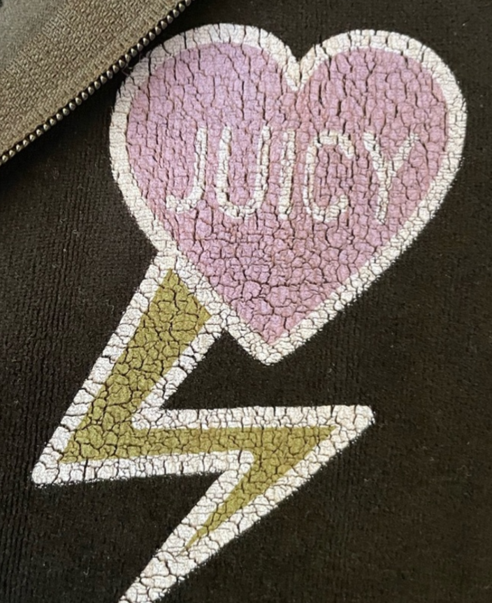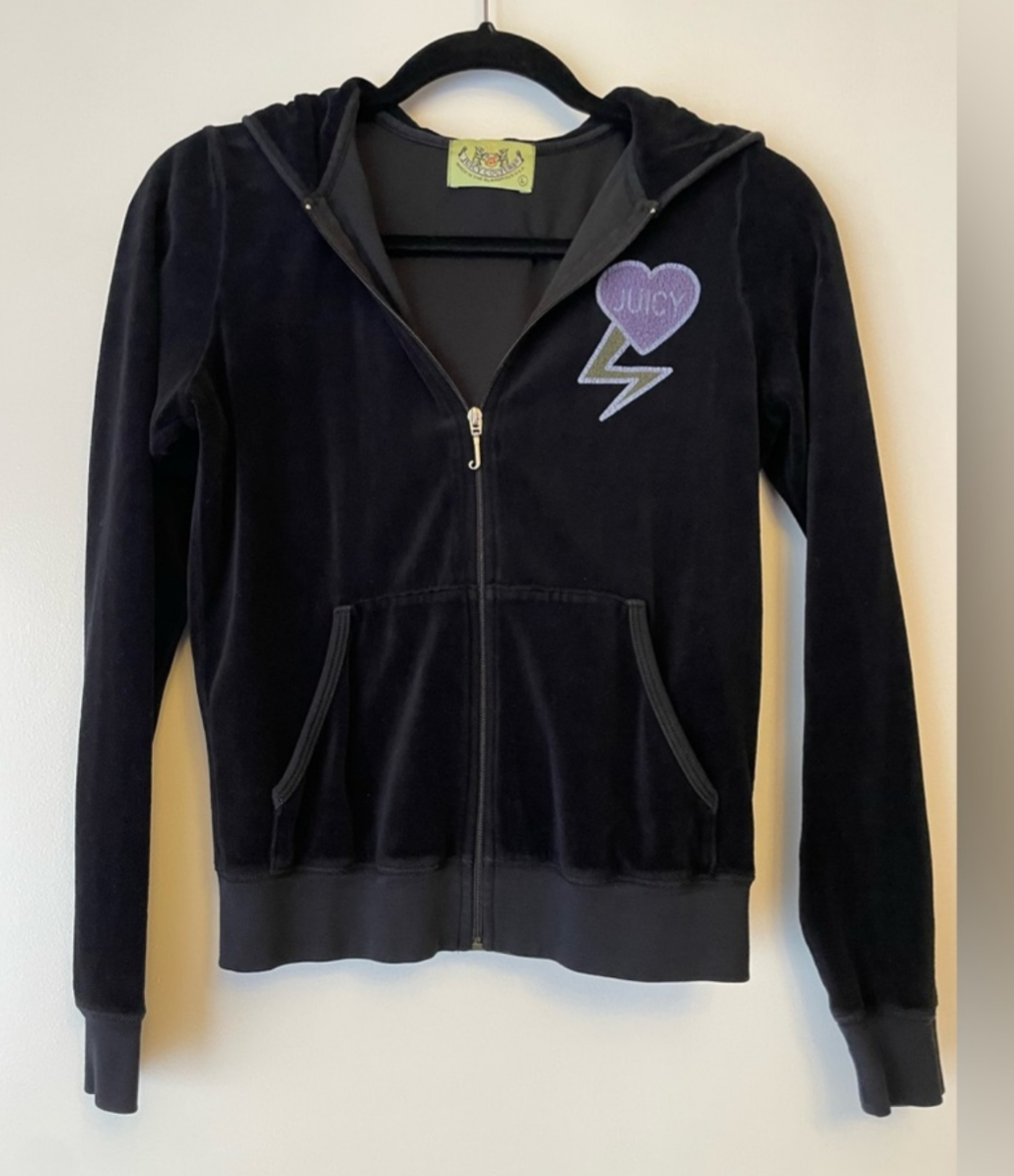 Couture Stuck Lightning Bolt Heart Swirl Zip Up Velour LS Hoodie 10162 CS 2006