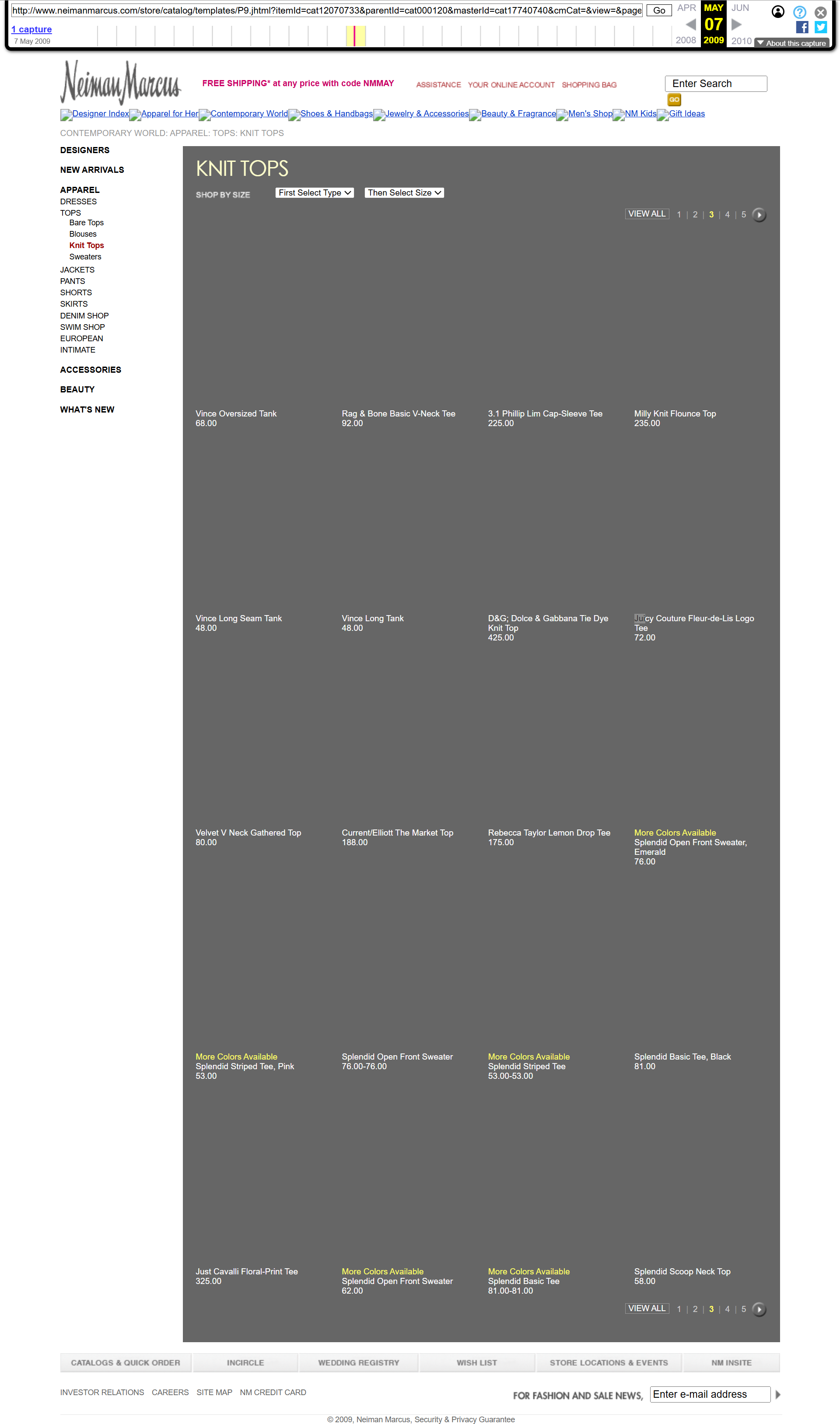 - https://web.archive.org/web/20090507062257/http://www.neimanmarcus.com/store/catalog/templates/P9.jhtml?itemId=cat12070733&parentId=cat000120&masterId=cat17740740&cmCat=&view=&page=3&filter1Type=&filter1Value=&filter2Type=&filter2Value=&filterOverride=&sort=&altFilter=