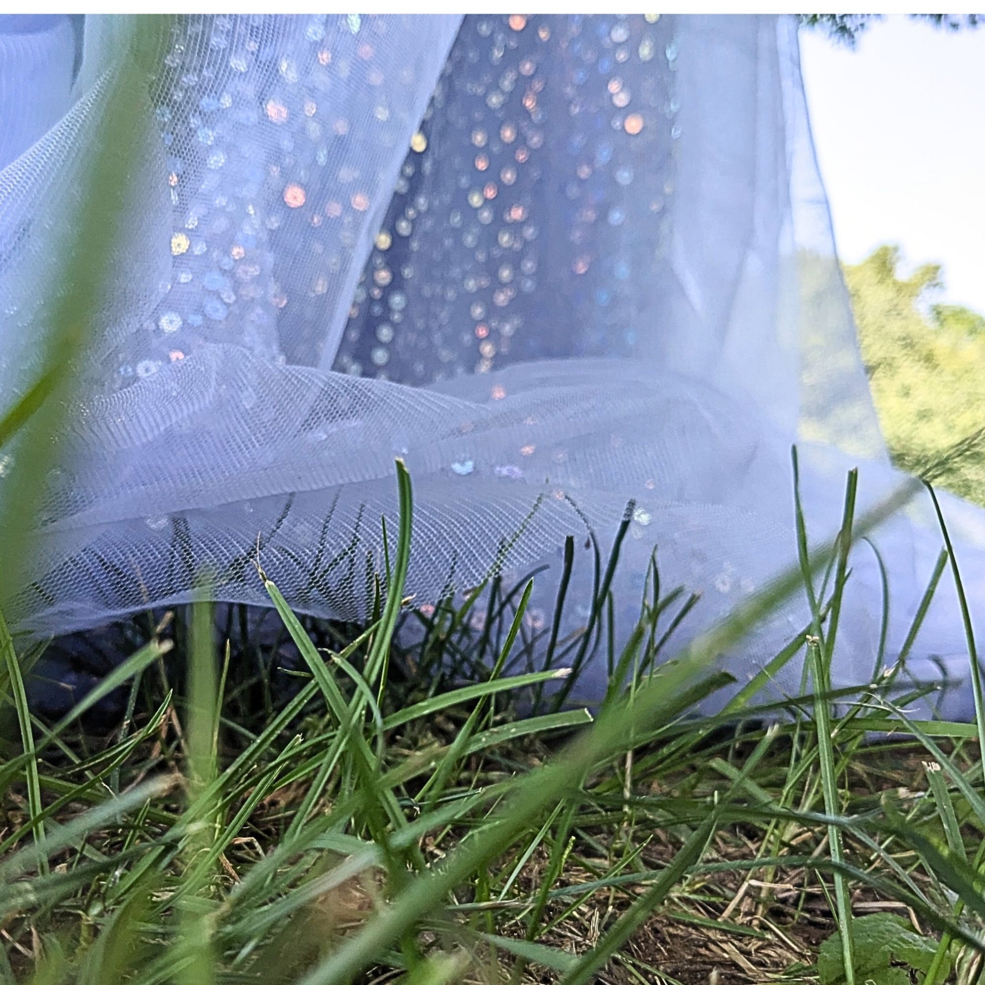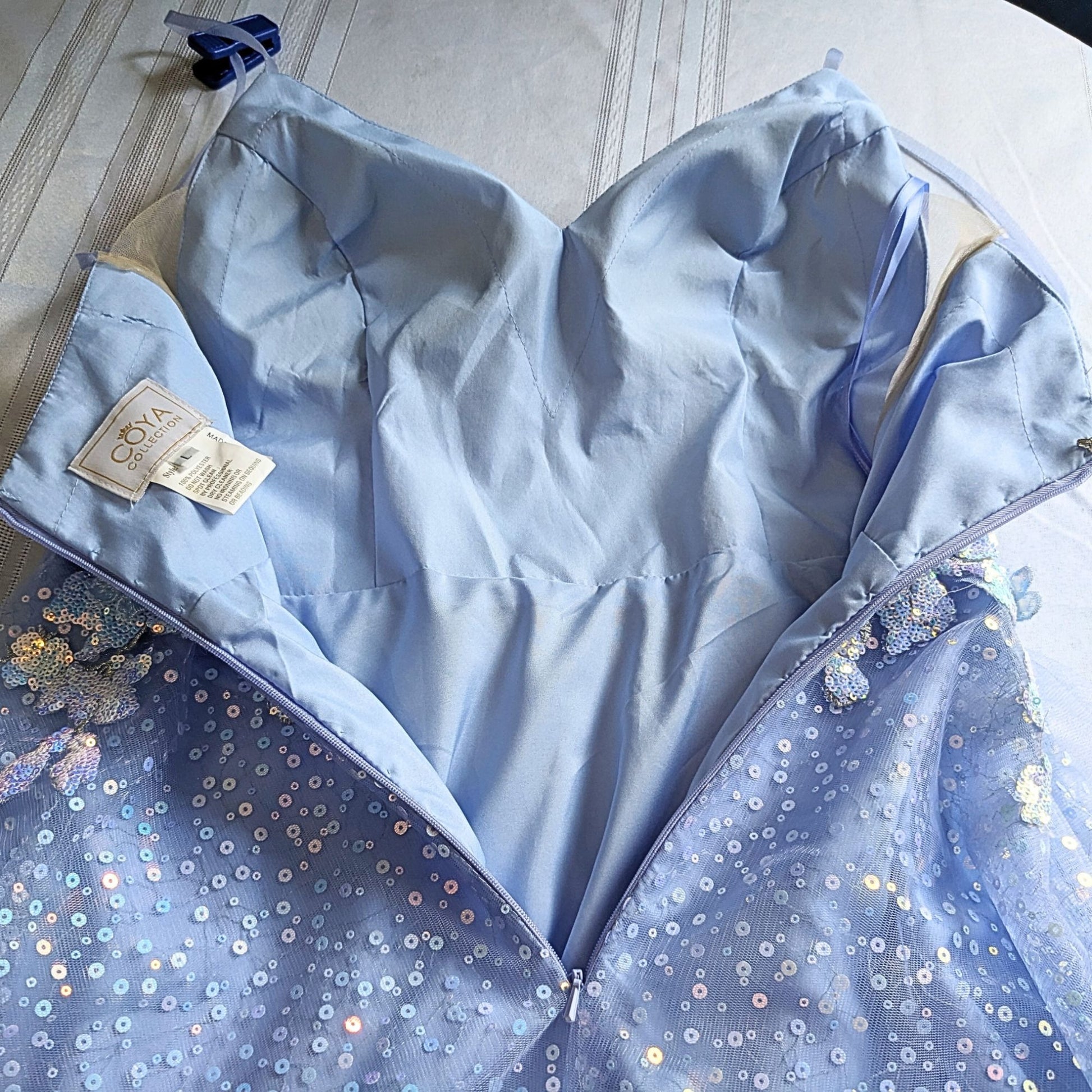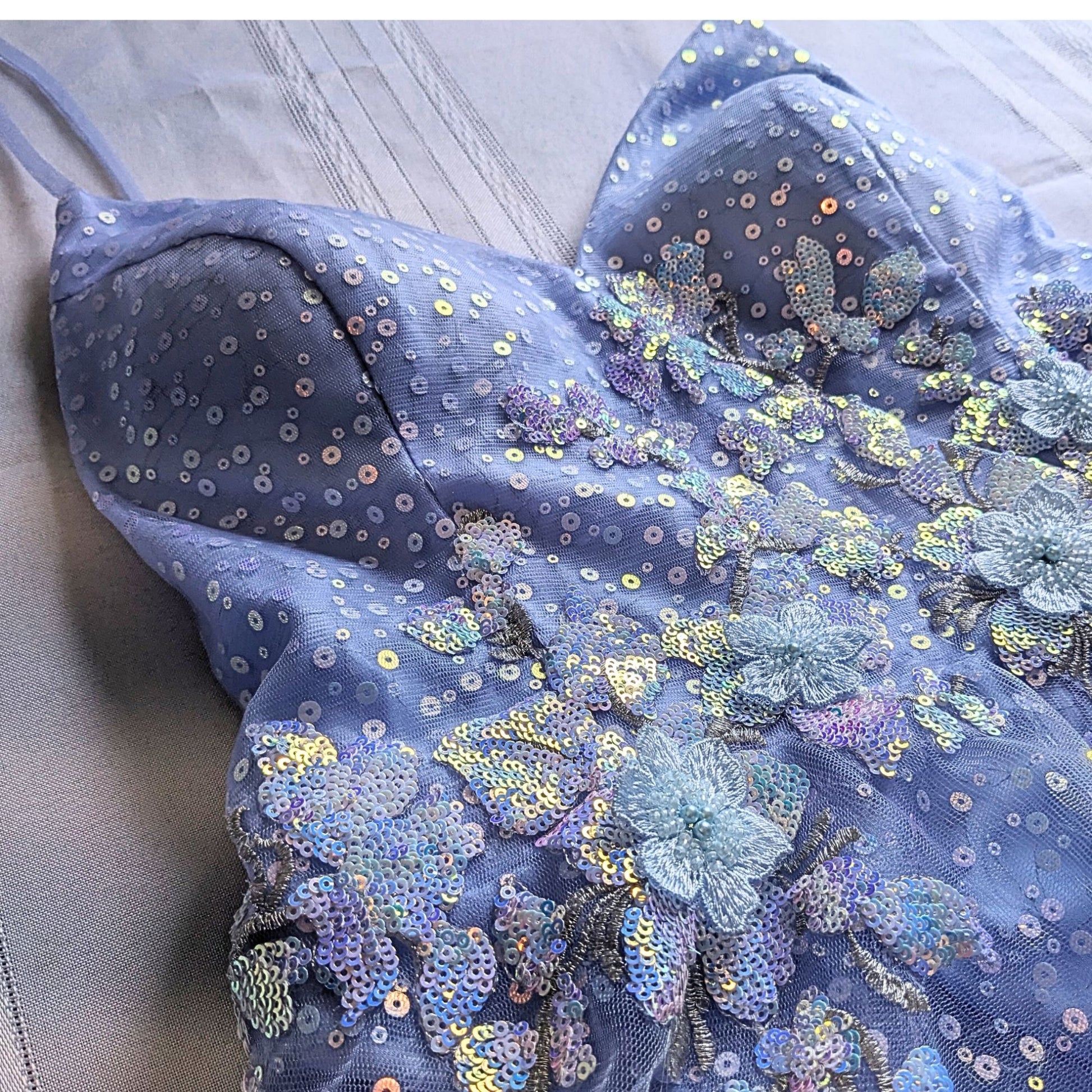 COYA Collection Periwinkle Blue Fairy Sequin Glitter Floral Appliqué illusion Side Cut Prom Pageant Ball Gown size L