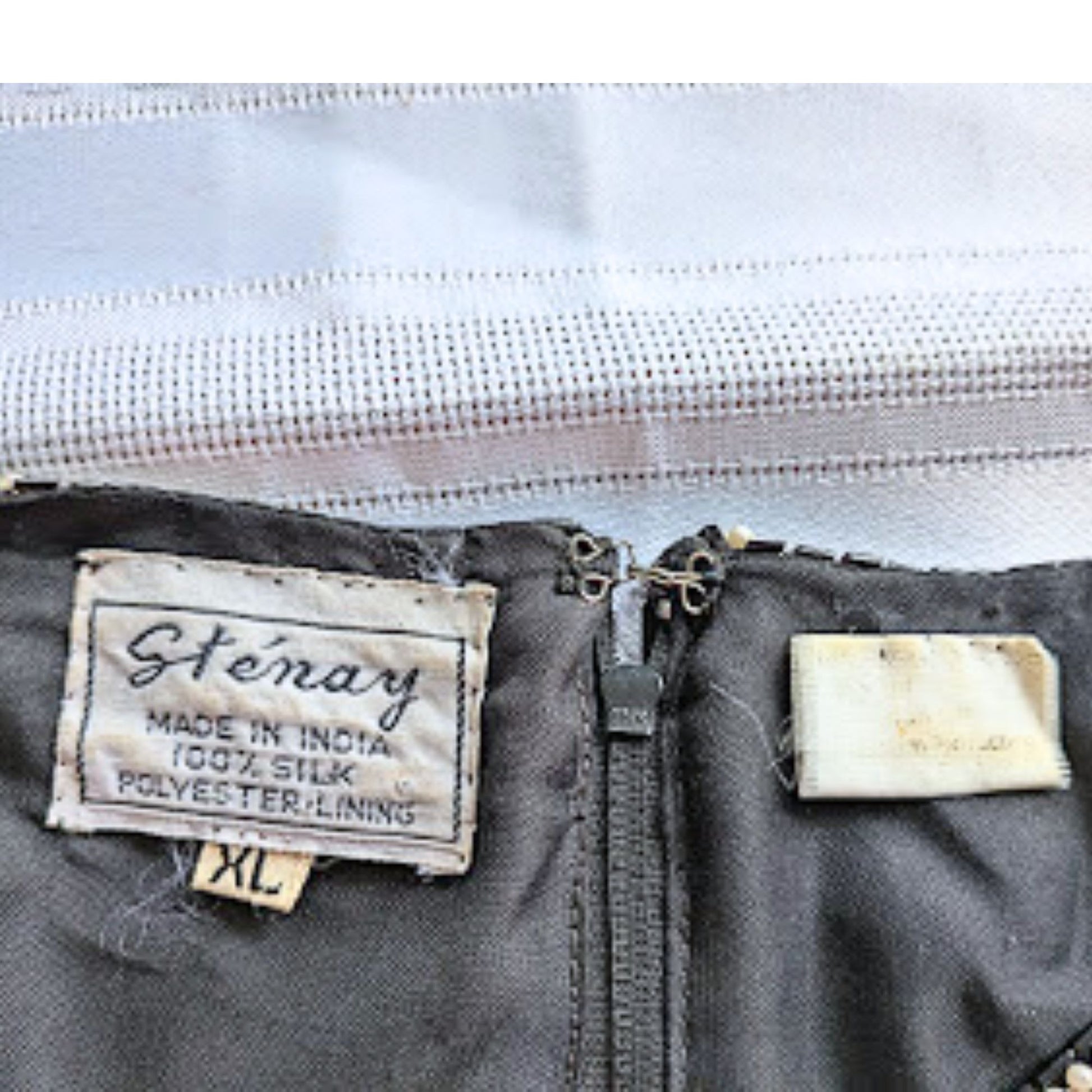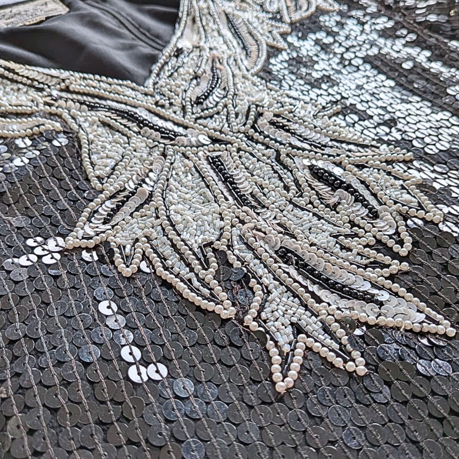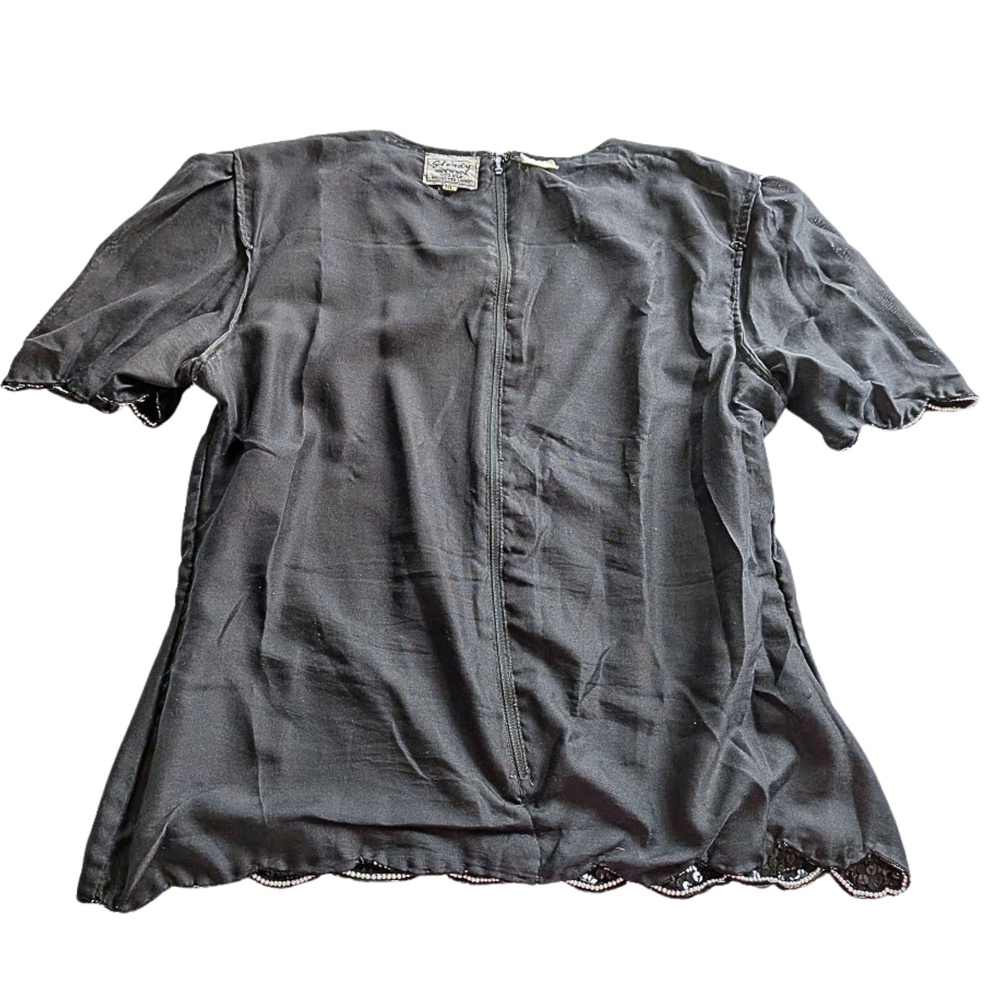 Vtg 80s STENAY 100% Silk Black & White Beaded Scallop Evening Top SzXL